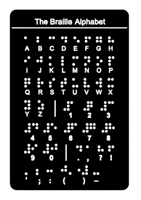 - Grade-1 Braille (Alphabetic Braille) = Full spelling